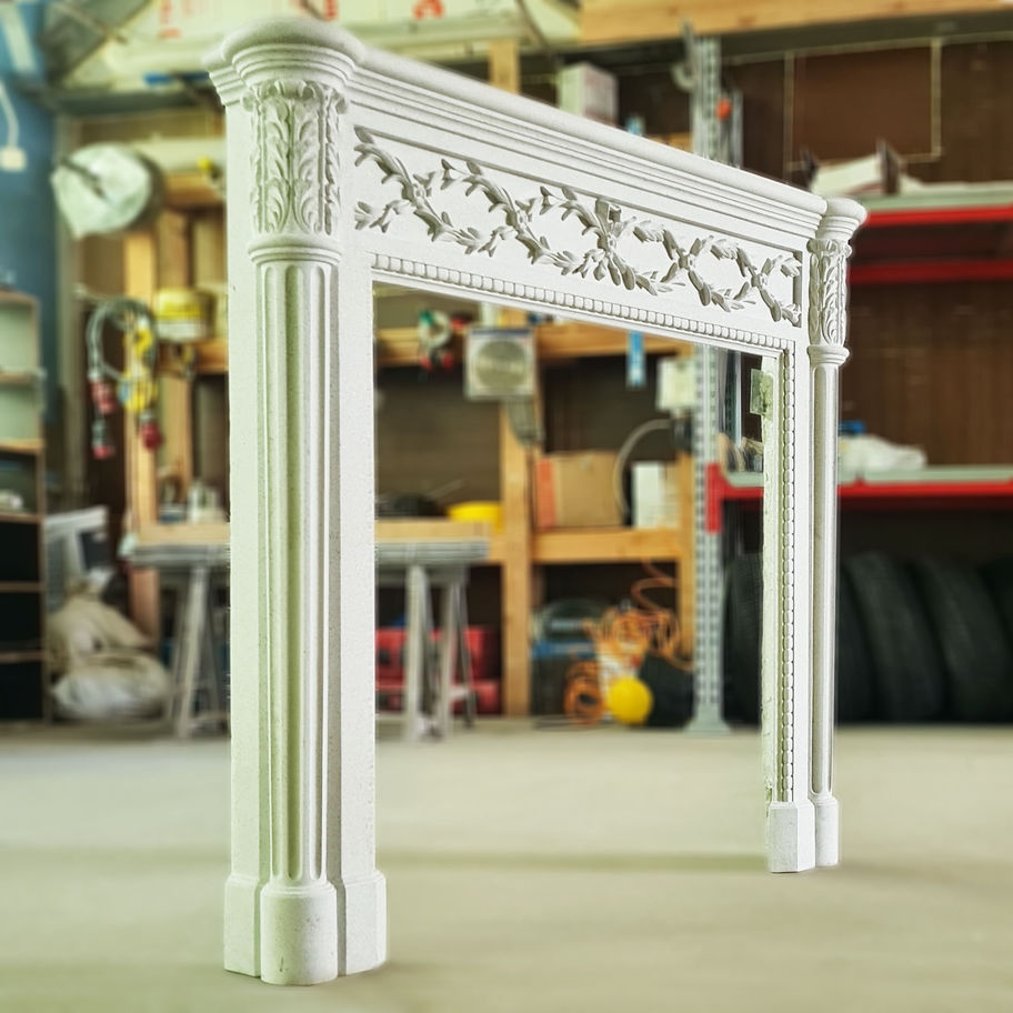 Portāls izgatavots no Jesmonite – moderns, videi draudzīgs kompozītmateriāls, kas ļauj atveidot visprecīzākās detaļas un faktūras. Apvienojot tradicionālo ornamentu valodu ar mūsdienīgu izturību, “Versailles” kļūst par smalku akcentu gan klasiskā, gan modernā interjerā.